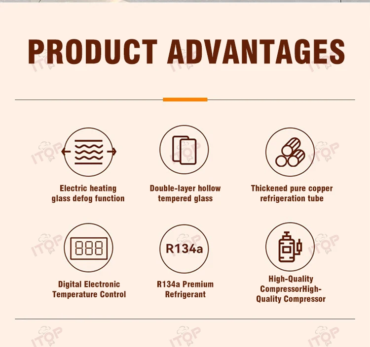 Feature Electric Glass Defog Function Hd Led Lighting High-Quality Compressor Digital Electronic Temperature Control Double-Layer Tempered Glass,Insulation, Durable
